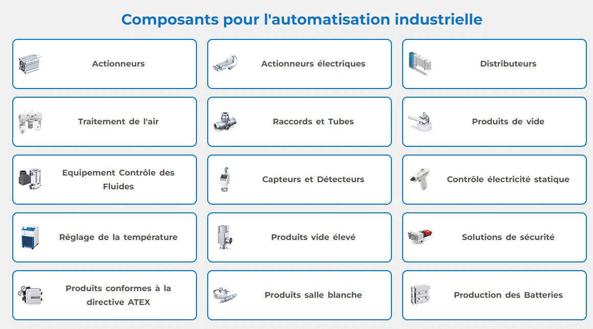 Pour vous offrir le meilleur en matière de solutions pneumatiques, nous travaillons en étroite collaboration avec SMC qui produit des composants les plus pointus pour les industries et plus spécifiques pour la robotique. Nous vous proposons ainsi l’intégralité de leur vaste catalogue et vous assistons aussi dans le montage et le service après-vente.